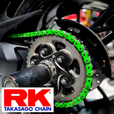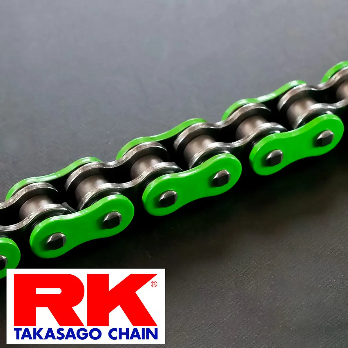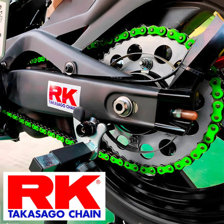 RK es una marca japonesa de cadenas para motos, ofrecen una amplia gama de cadenas para diferentes tipos de motocicletas, incluyendo modelos urbanos y de competición, destacándose por su tecnología avanzada y rendimiento fiable.