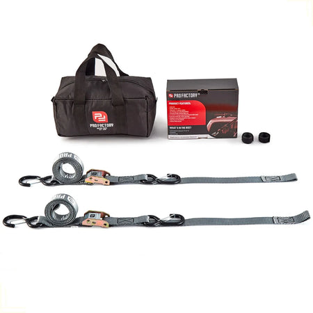 CORREAS AMARRE CINCHOS TIE DOWN 1.0"/25 MM PARA MOTOCICLETAS - PAR - GRIS - PRO FACTORY