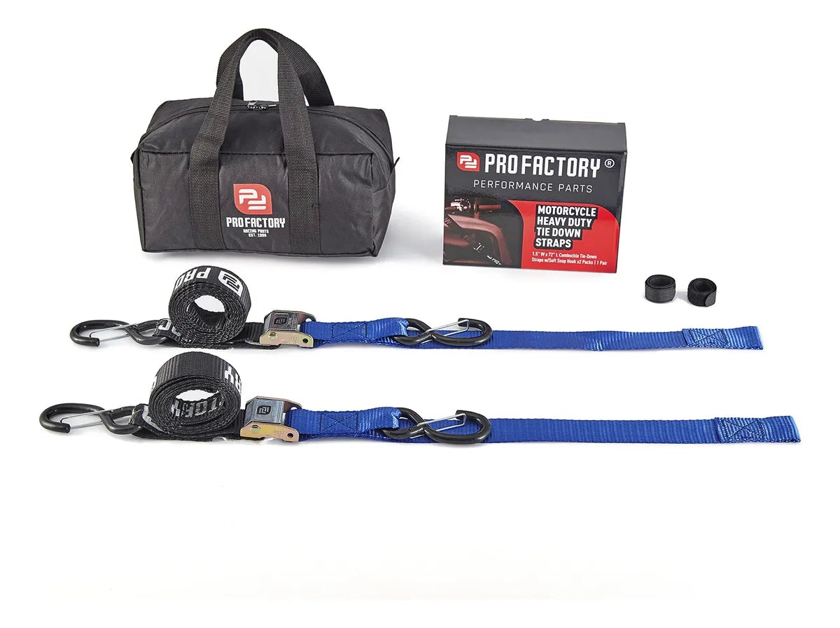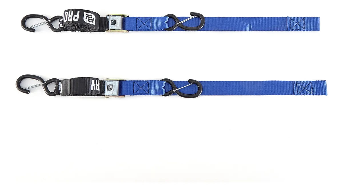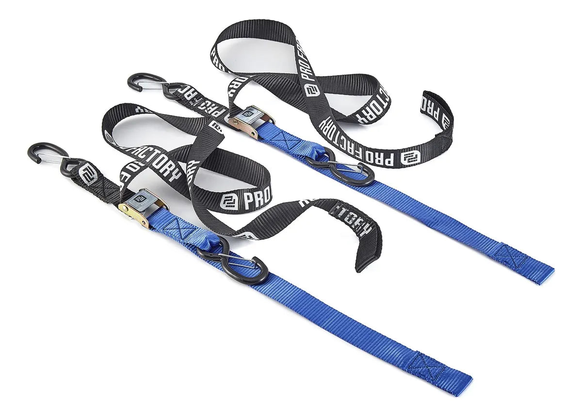 CORREAS AMARRE CINCHOS TIE DOWN 1.5"/38 MM PARA MOTOCICLETAS - PAR - NEGRO/AZUL - PRO FACTORY