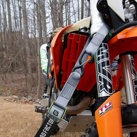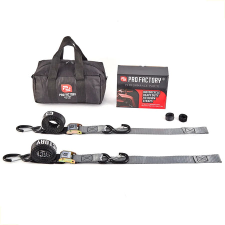 CORREAS AMARRE CINCHOS TIE DOWN 1.5"/38 MM PARA MOTOCICLETAS - PAR - NEGRO/GRIS - PRO FACTORY