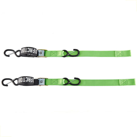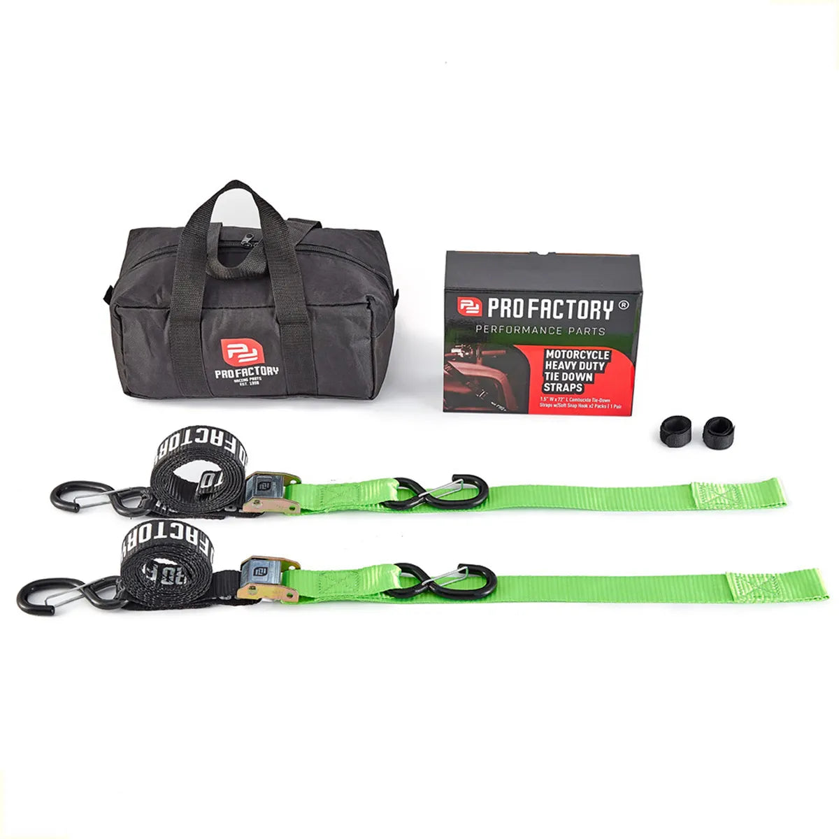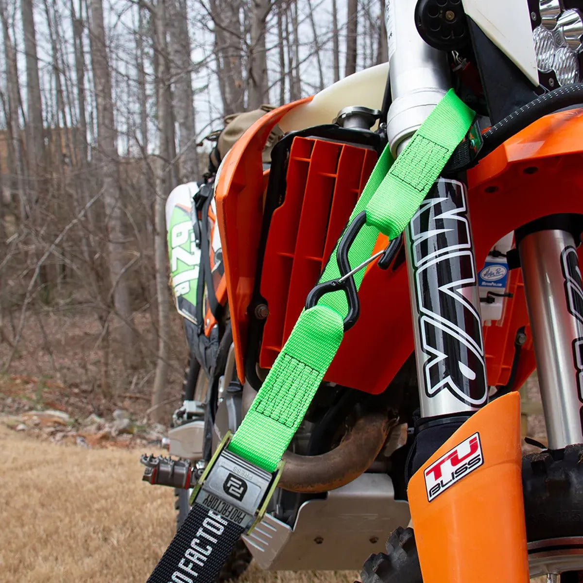 CORREAS AMARRE CINCHOS TIE DOWN 1.5"/38 MM PARA MOTOCICLETAS - PAR - NEGRO/VERDE - PRO FACTORY