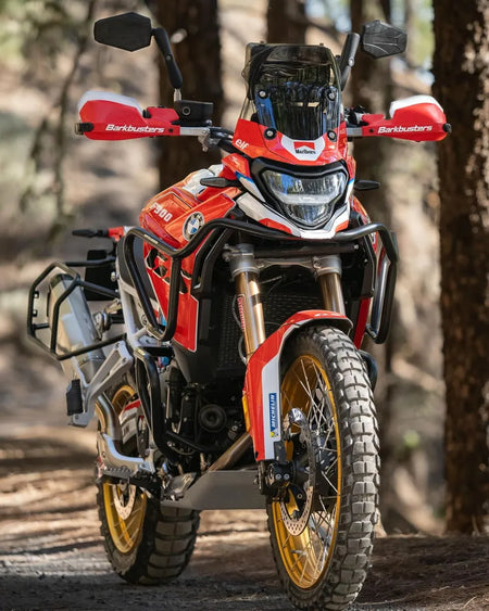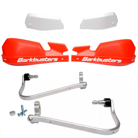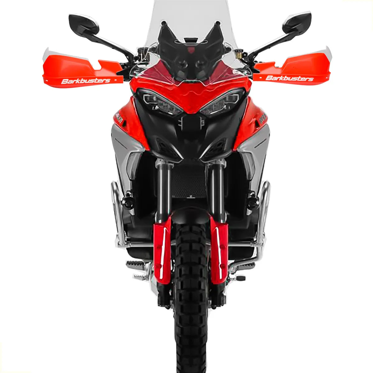 CUBRE PUÑOS ALUMINIO BMW G 310 GS - SUZUKI DL V-STROM 1000/650 - HONDA NC 700/750X - CB 500X 13-15 - XL 1000 V VARADERO - VFR CROSSTOURER 1200 X - KAWASAKI KLZ VERSYS 1000 12-14 - ROJO/BLANCO [INCLUYE PLASTICOS VPS] - BARKBUSTERS