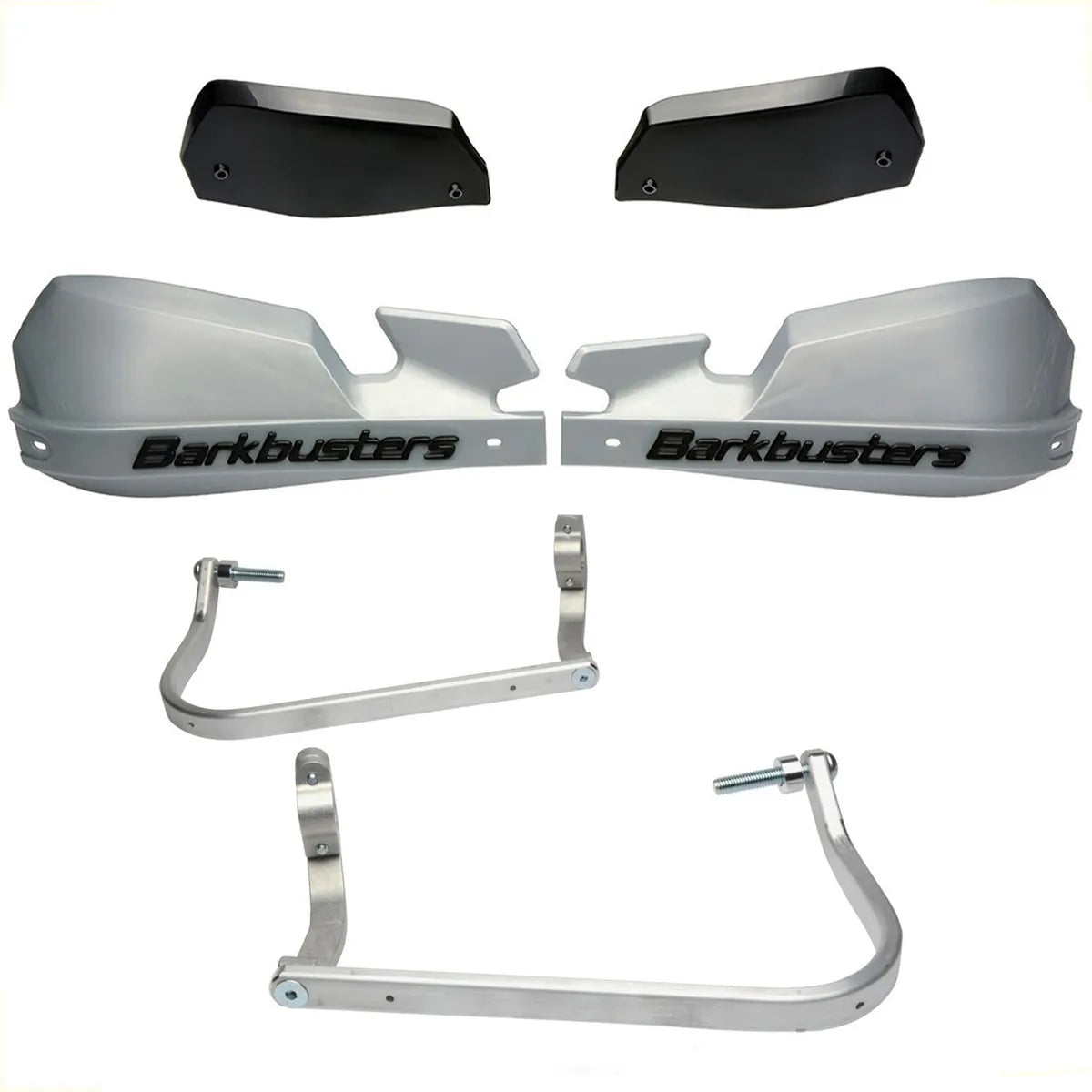 CUBRE PUÑOS ALUMINIO BMW R 1200 GS LC 13-18 - R 1200 GS LC ADVENTURE 14-19 - S 1000 XR - R 1200 R 15-18 - R 1250 R 19-24 - PLATEADO/NEGRO [INCLUYE PLASTICOS VPS] - BARKBUSTERS