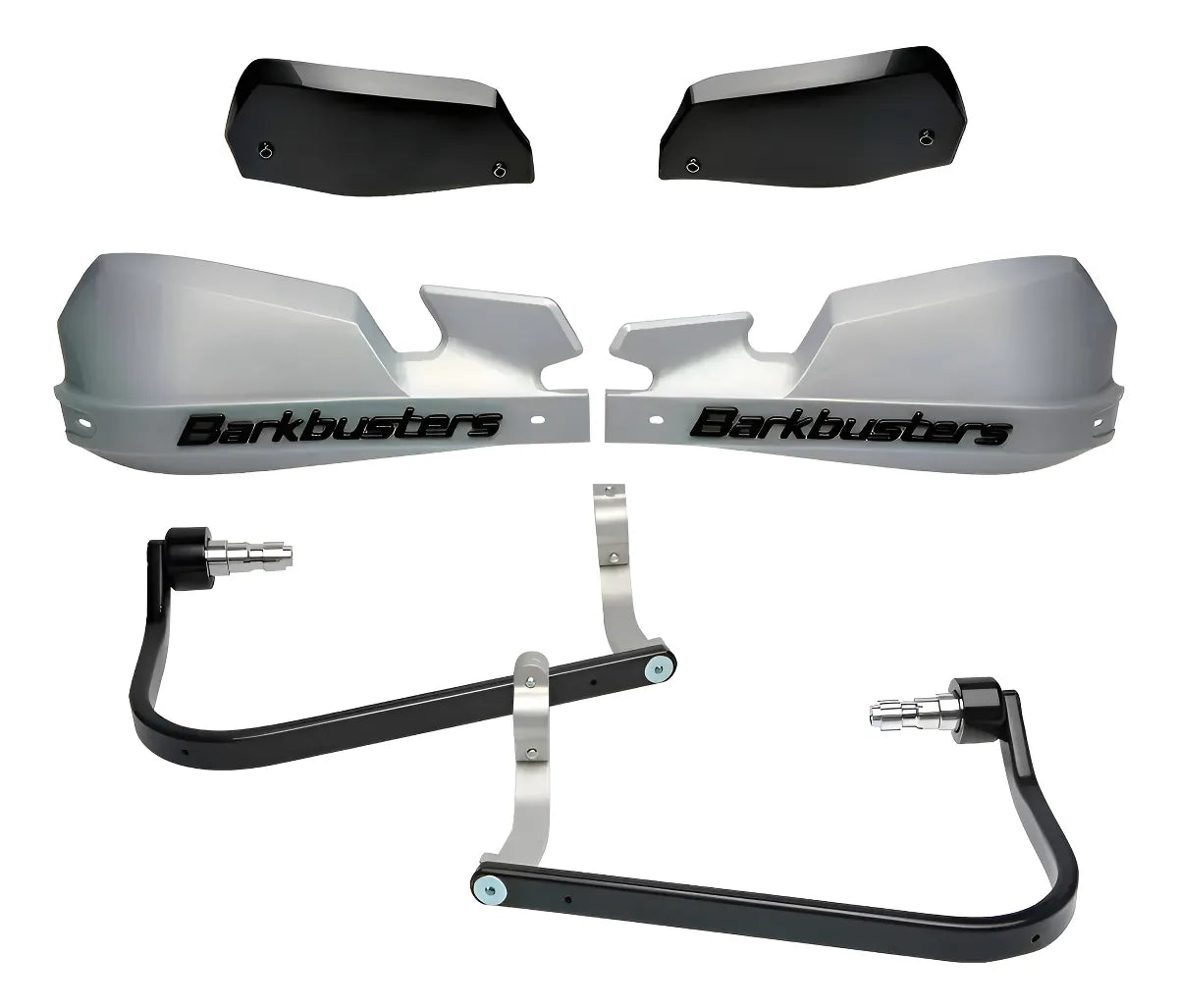 CUBRE PUÑOS ALUMINIO KTM DUKE 200/250/390 - HONDA CB 500F 13-18 - CB 500X 16-18 - CB 650F/R - BMW F 700/800 GS - F 800 GS ADVENTURE 16-18 - ROYAL ENFIELD HUNTER 350 - GRIS/NEGRO [INCLUYE PLASTICOS VPS] - BARKBUSTERS