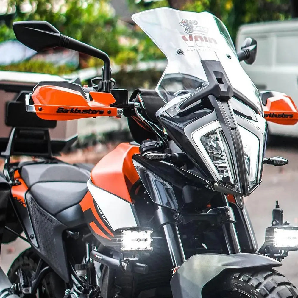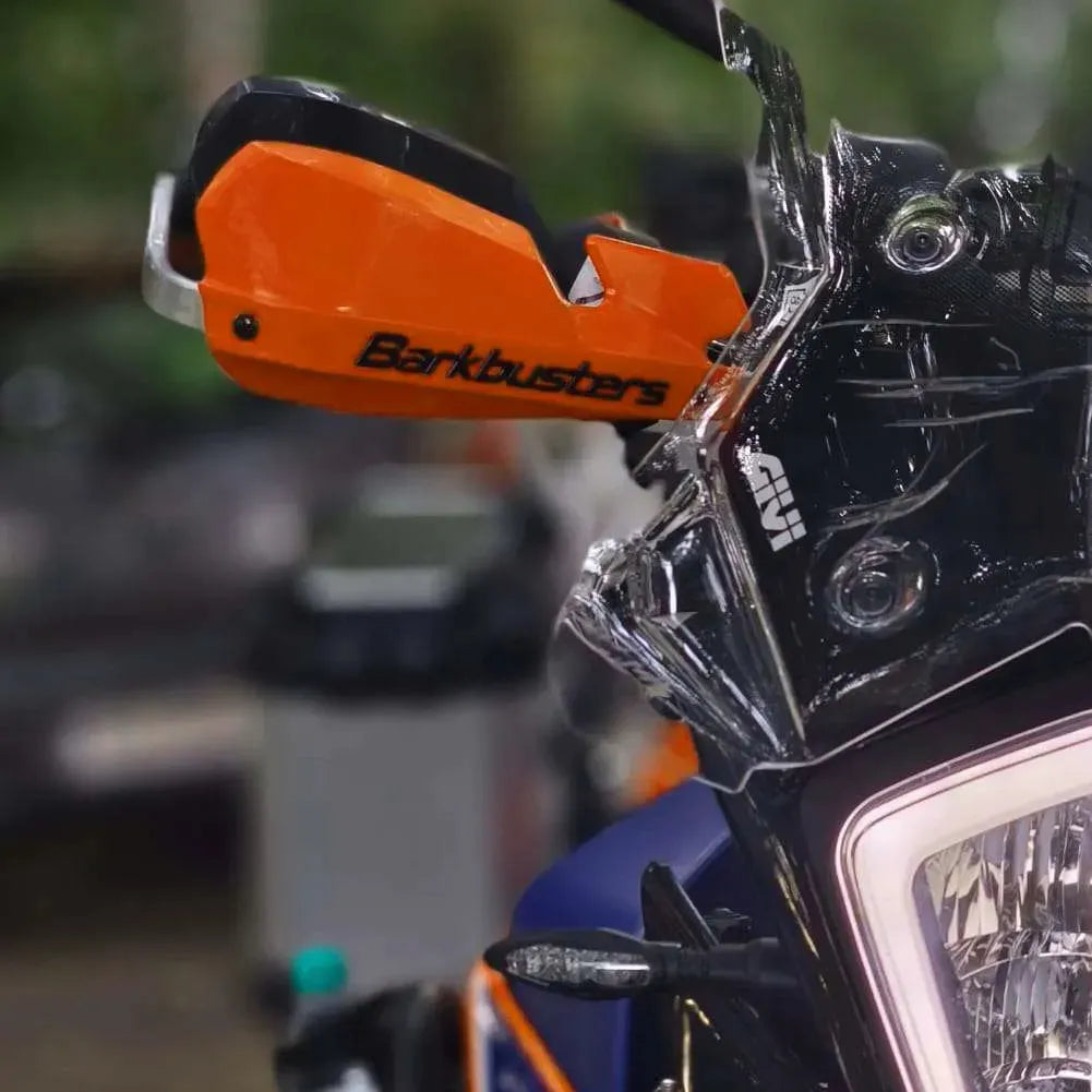 CUBRE PUÑOS ALUMINIO KTM DUKE 200/250/390 - HONDA CB 500F 13-18 - CB 500X 16-18 - CB 650F/R - BMW F 700/800 GS - F 800 GS ADVENTURE 16-18 - ROYAL ENFIELD HUNTER 350 - NARANJA/NEGRO [INCLUYE PLASTICOS VPS] - BARKBUSTERS