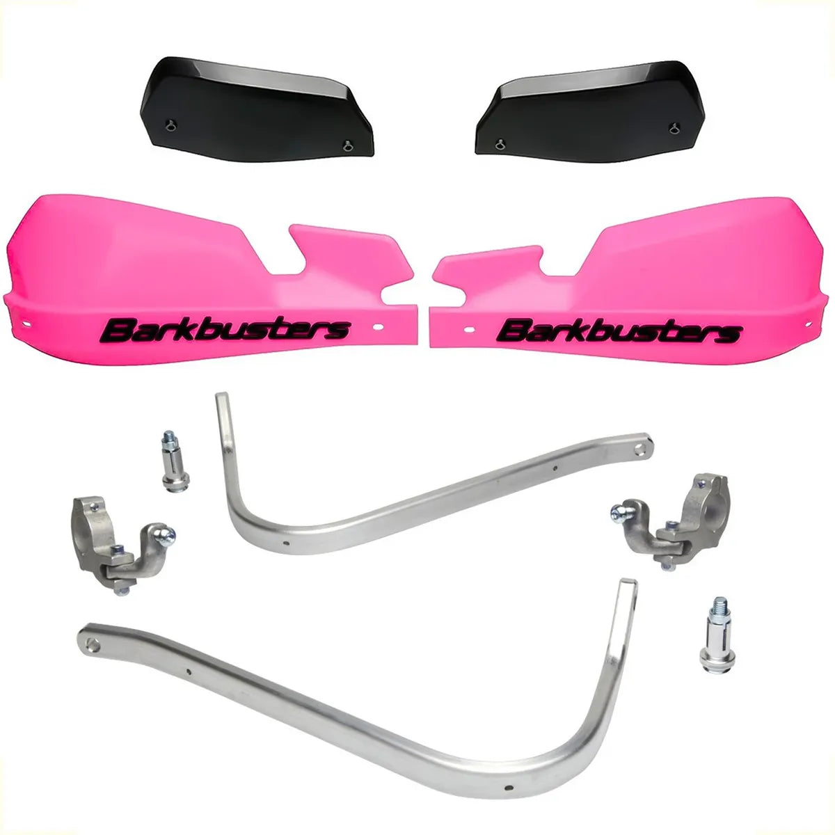 CUBRE PUÑOS ALUMINIO KTM EXC 125/250/300 - EXC-F 350/450/500 - HUSQVARNA FE 250/350/450/501 - TE 125/250/300/350 - K VERSYS 1000 15-18 - ROSA/NEGRO [INCLUYE PLASTICOS VPS] - BARKBUSTERS