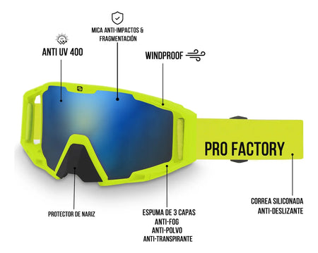 GOGGLES GAFAS TACTICOS MOTOCROSS MX2 - AMARILLO - PRO FACTORY