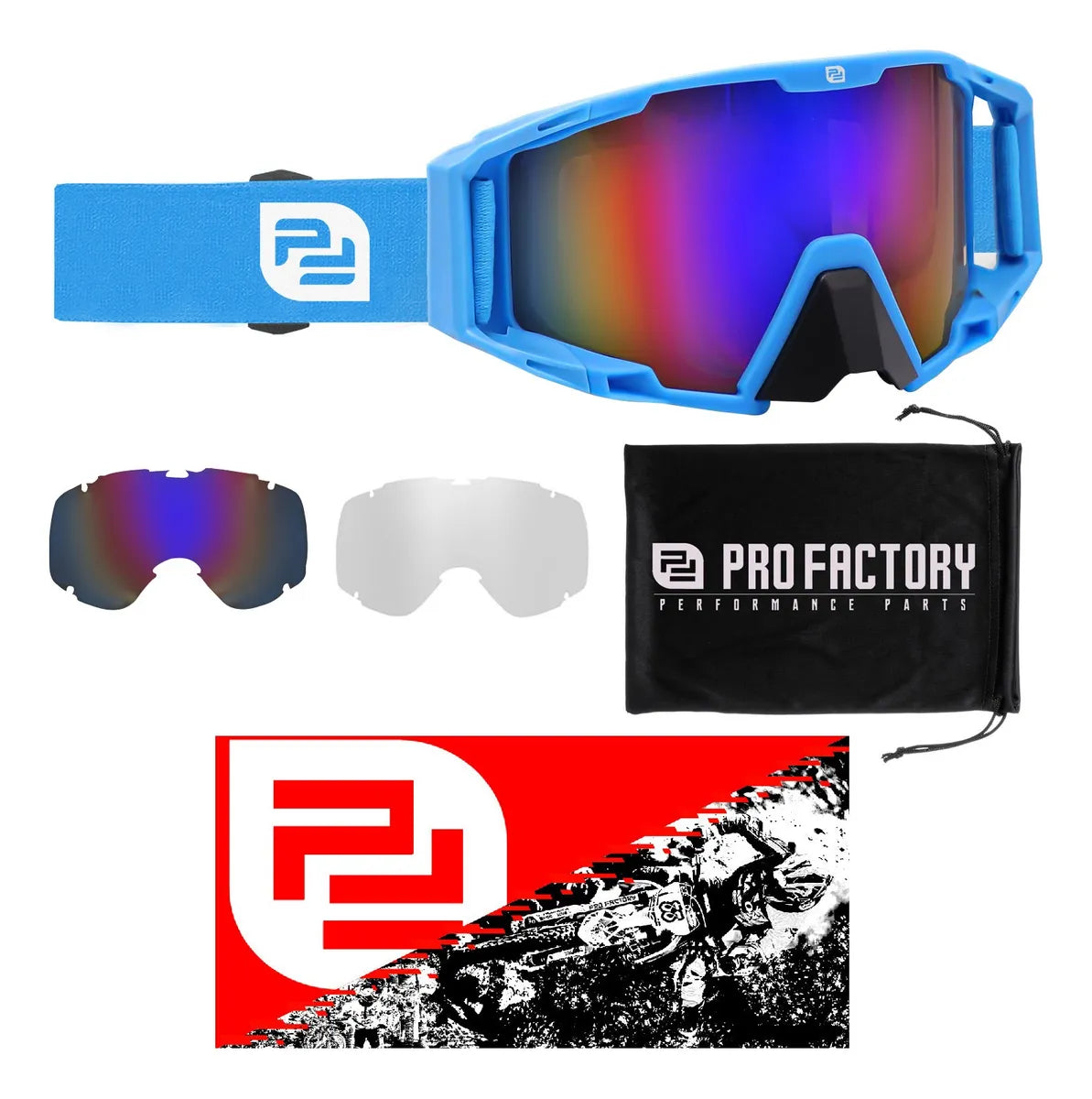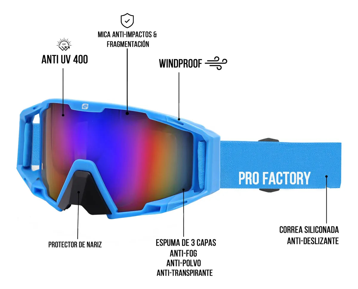 GOGGLES GAFAS TACTICOS MOTOCROSS MX2 - CELESTE/BLANCO- PRO FACTORY