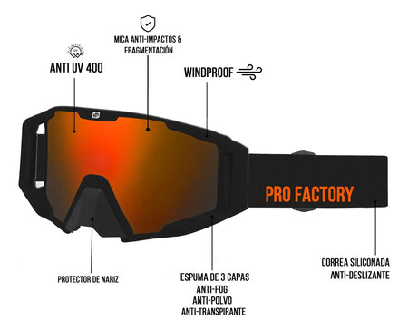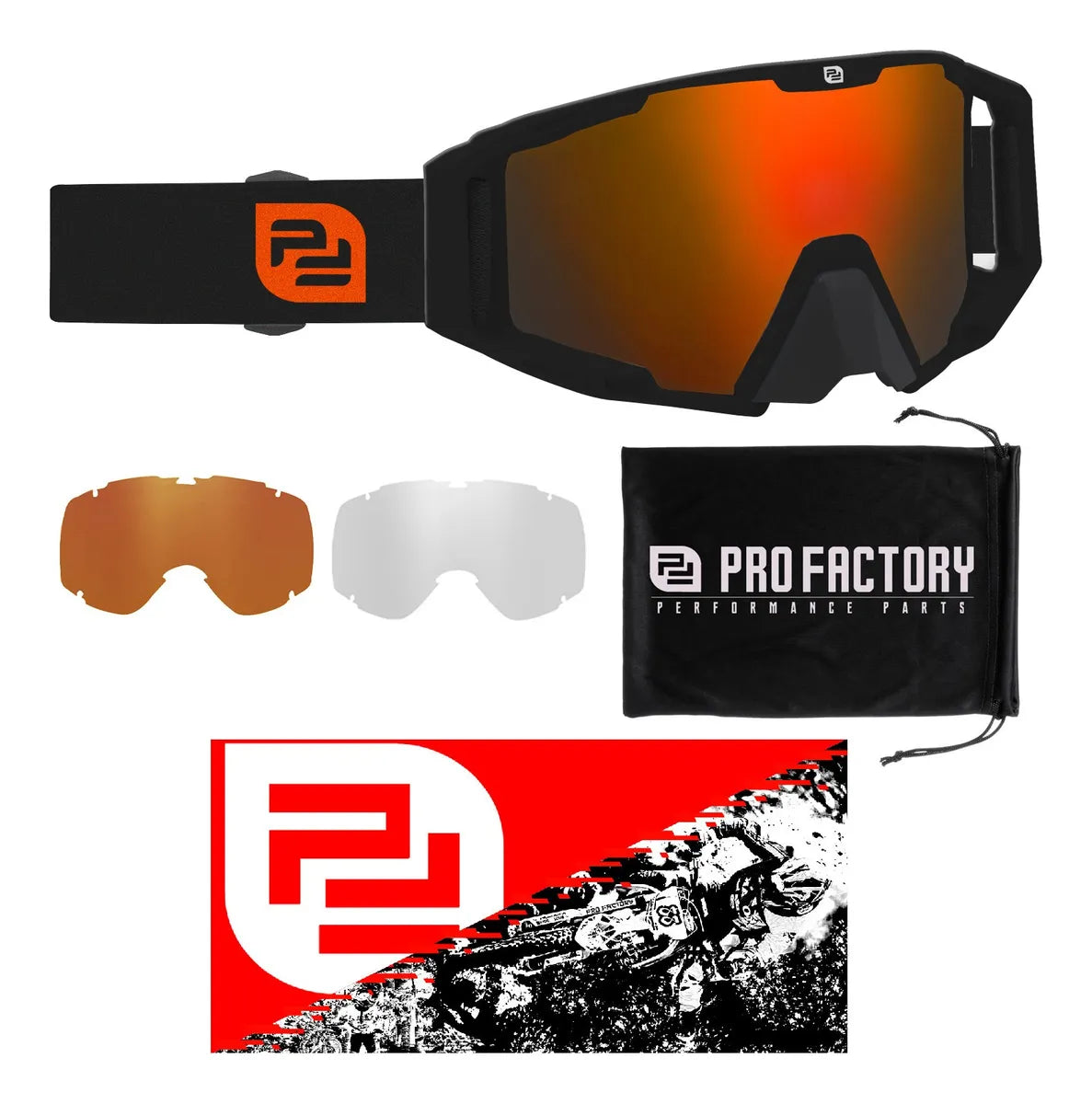 GOGGLES GAFAS TACTICOS MOTOCROSS MX2 - NEGRA NARANJA - PRO FACTORY