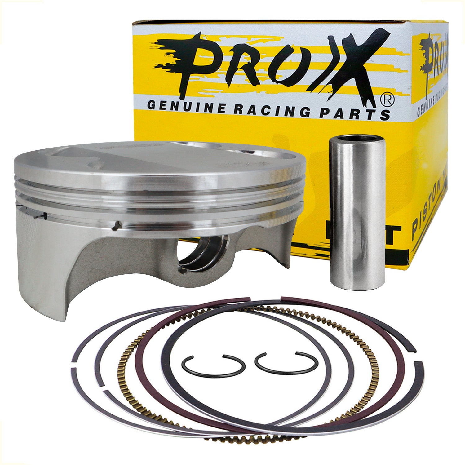 El Kit de Pistón ProX incluye pistón, anillos, pasador y clips, mecanizados con precisión en equipos CNC de última generación. Fabricado con la misma aleación de bajo coeficiente de expansión y baja fricción que utilizan los principales fabricantes de motores mundiales, es ideal para reemplazar el pistón original de motocicletas off-road. Apto para todo tipo de uso y exigencia, incluyendo competición.