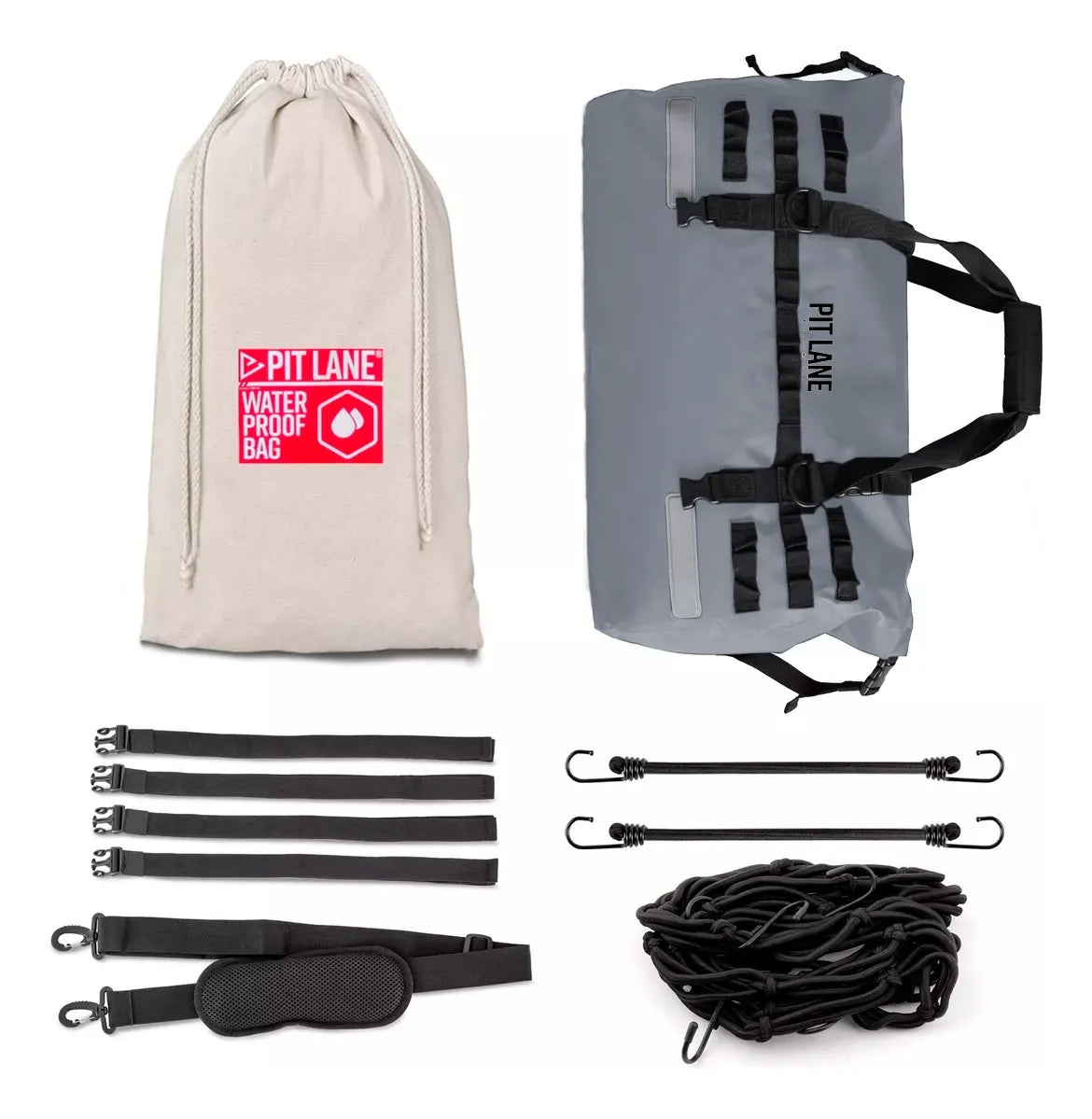 Fabricada en duradero PVC de 600D, completamente impermeable. Todas las costuras están termoselladas para ofrecer la máxima protección contra la humedad.