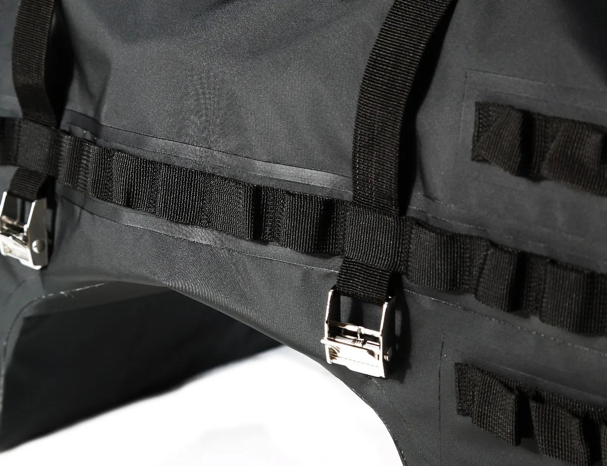 Combinable fácilmente con cualquier otra maleta gracias a sus múltiples correas tipo molle.