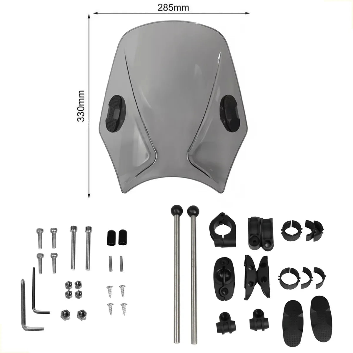 Parabrisas Universal para motocicletas estilo Scrambler/Cafe Racer. Transforma tu moto con estilo y funcionalidad. Dale un toque distintivo a tu scrambler y mejora tu comodidad en la carretera.
