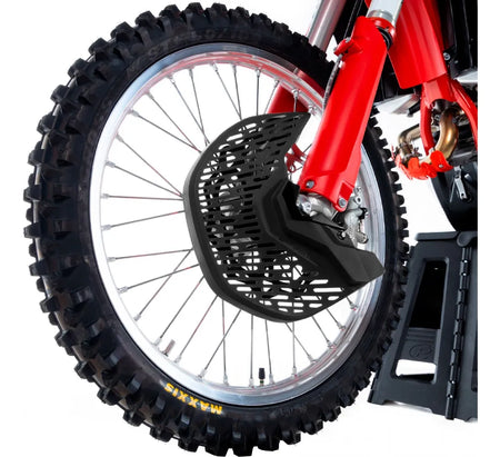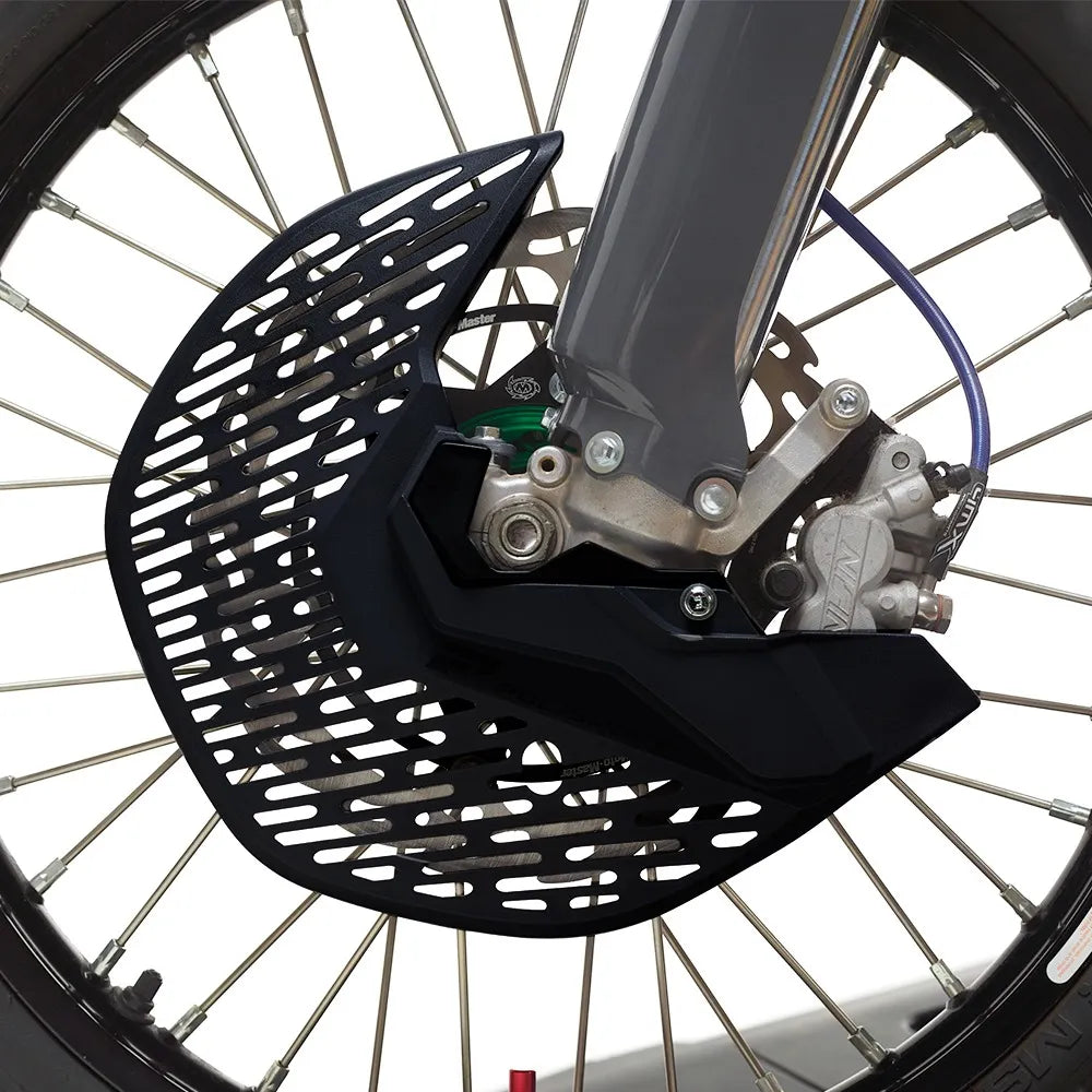 Protección completa del disco de freno y la parte inferior de la horquilla contra piedras y residuos.